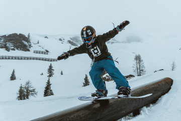Začínáme od základů na bednách a malých skocích, krok za krokem přidáváme obtížnost a styl… až třeba po mega big air!